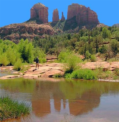 Red Rock Crossing is known for swimming, picnic areas and lots of easy well marked trails. Cathedral Rock is a beautiful back drop for Oak Creek, as it moves through this area. Oak Creek and Red Rock Crossing is a landscape of wilderness and wonderment with sharp contrasts in the elements of Earth, Water and Sky.